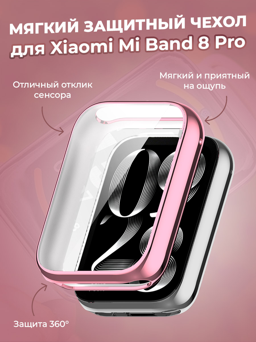 Защитный чехол-стекло для Xiaomi Mi Band 8 Pro, розовый