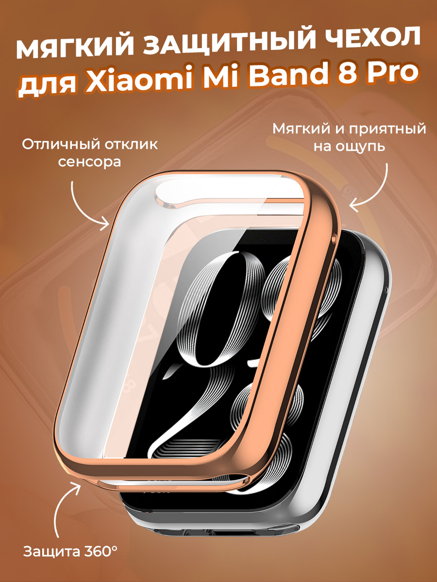 Защитный чехол-стекло для Xiaomi Mi Band 8 Pro, розово-золотой