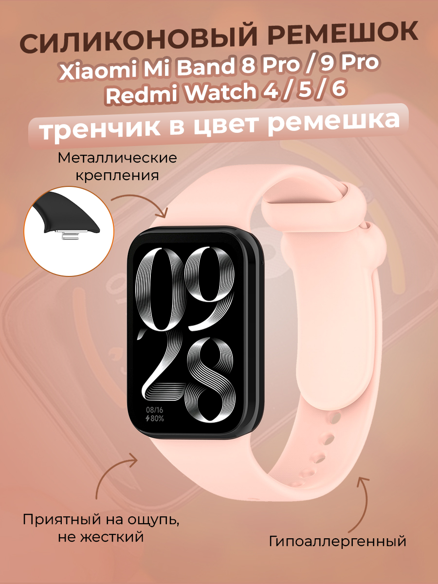 Силиконовый ремешок для Xiaomi Mi Band 8 Pro/9 Pro и Redmi Watch 4/5/6, тренчик в цвет ремешка, розовый