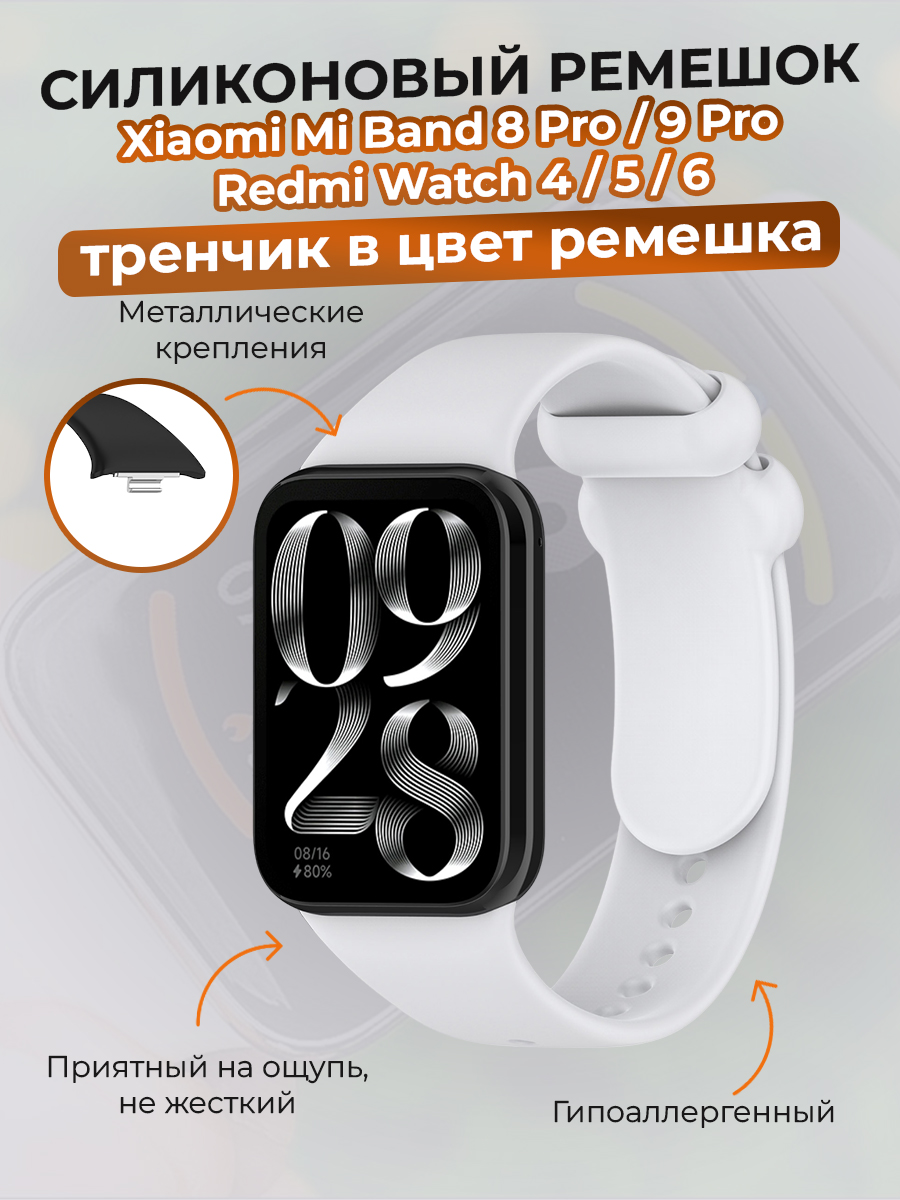 Предлагаем вам стильный и функциональный силиконовый ремешок для Xiaomi Mi Band 8 Pro / Xiaomi Mi Band 9 Pro / Redmi Watch 4 / Redmi Watch 5 / Redmi Watch 6, который станет отличным дополнением к вашим смарт-часам. Этот mi band 8 pro ремешок с тренчиком в цвет идеально подходит для активных людей, ценящих комфорт и прeкрасный дизайн.