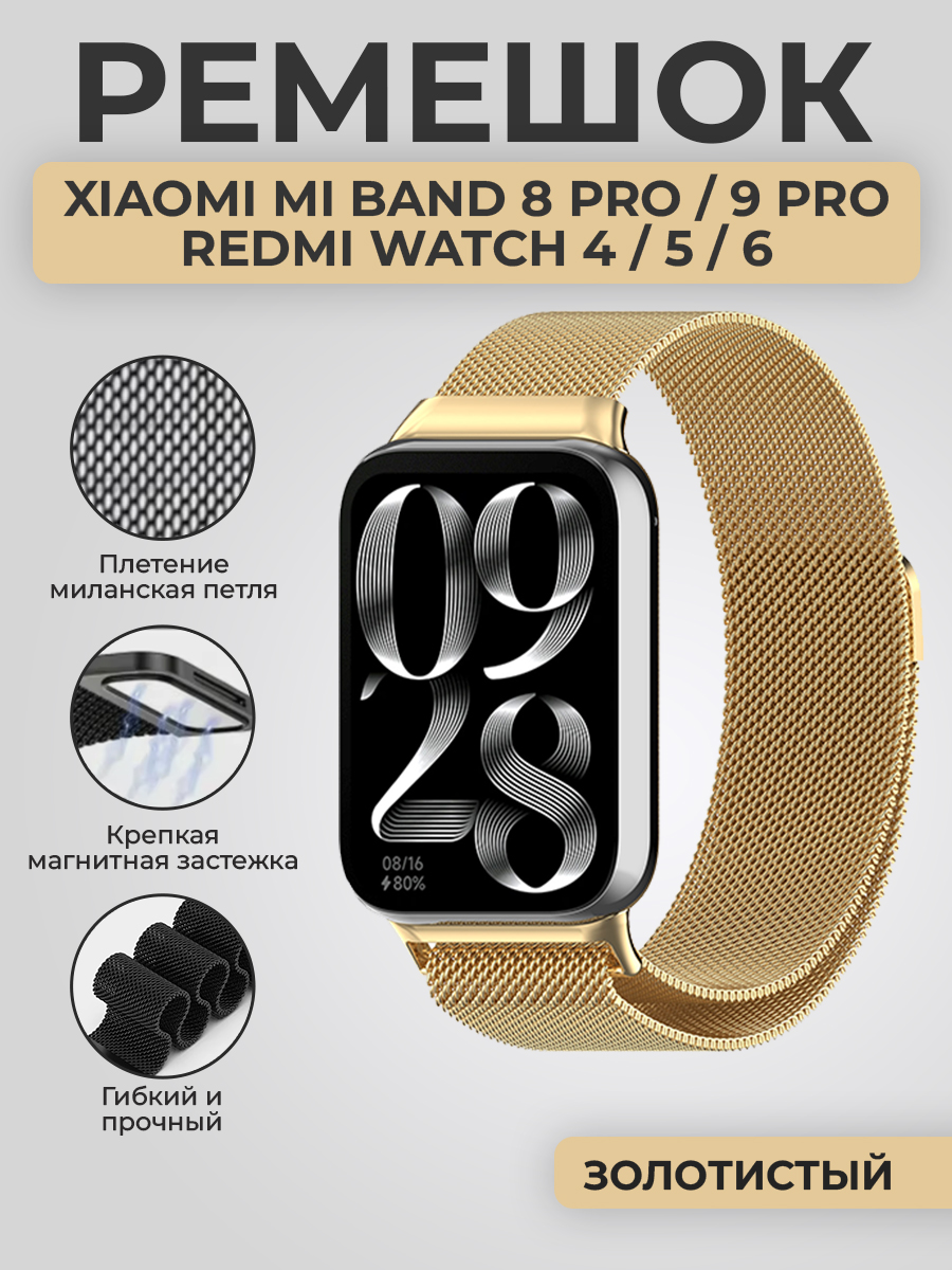 Ремешок миланская петля для Xiaomi Mi Band 8 Pro/9 Pro / Redmi Watch 4/5/6, золотистый