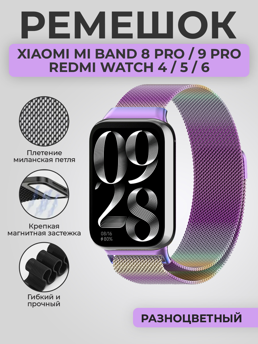 Ремешок миланская петля для Xiaomi Mi Band 8 Pro/9 Pro / Redmi Watch 4/5/6, разноцветный