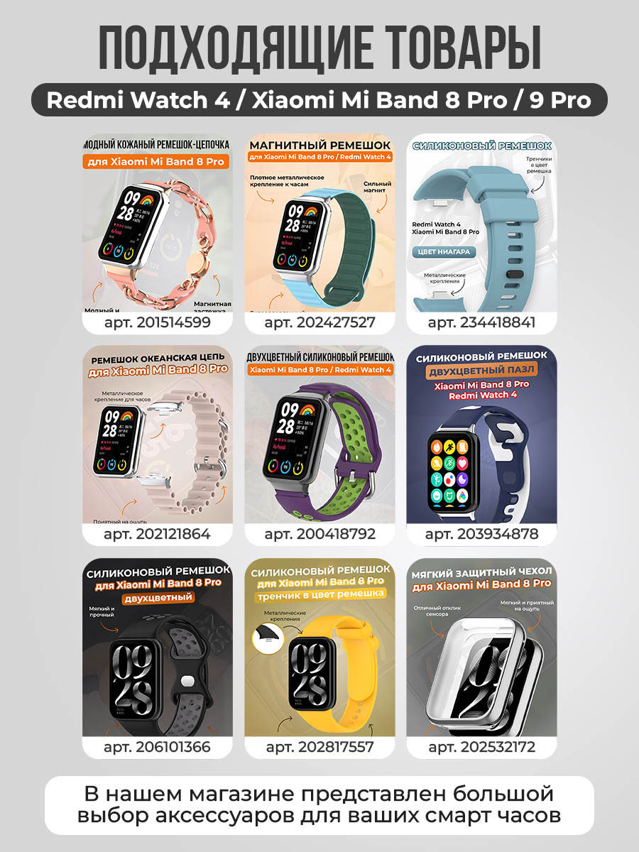 Выбирайте ремень Редми Вотч 5 миланская петля и наслаждайтесь сочетанием стиля и комфорта, которое он предлагает. Этот ремешок подойдет для всех, кто ценит качество и элегантность в аксессуарах, обеспечивая идеальное дополнение к вашим Сяоми, Ксиоми , Xiaomi, Сяоми вотч, Xiaomi Watch, Сиаоми вотч. Напоминаем, что благодаря регулируемой длине, этот ремешок подойдет под ширину запястья любого человека будь то мужское или женское. Выбирайте лучший стиль с ремешком миланская петля для Xiaomi Mi Band 8 Pro и Сяоми Бенд 9 про!