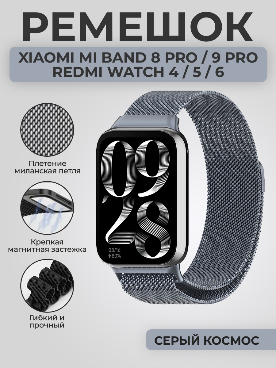 Ремешок миланская петля для Xiaomi Mi Band 8 Pro/9 Pro / Redmi Watch 4/5/6, серый космос