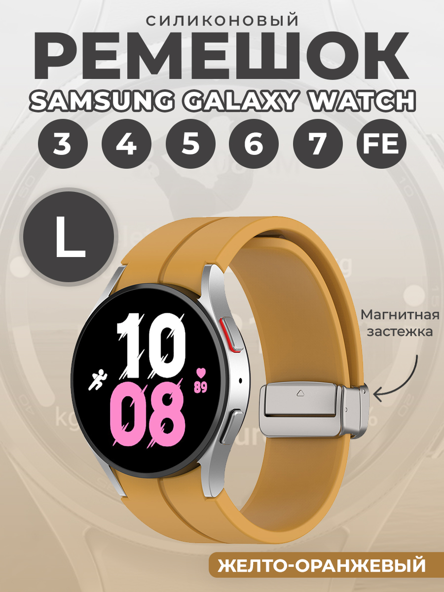 Силиконовый ремешок для Samsung Galaxy Watch 3/4/5/6/7/FE, L, серебристая застежка, желто-оранжевый
