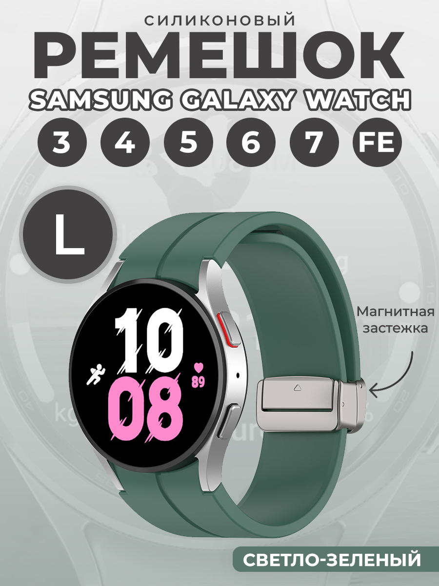 Силиконовый ремешок для Samsung Galaxy Watch 3/4/5/6/7/FE, L, серебристая застежка, светло-зеленый