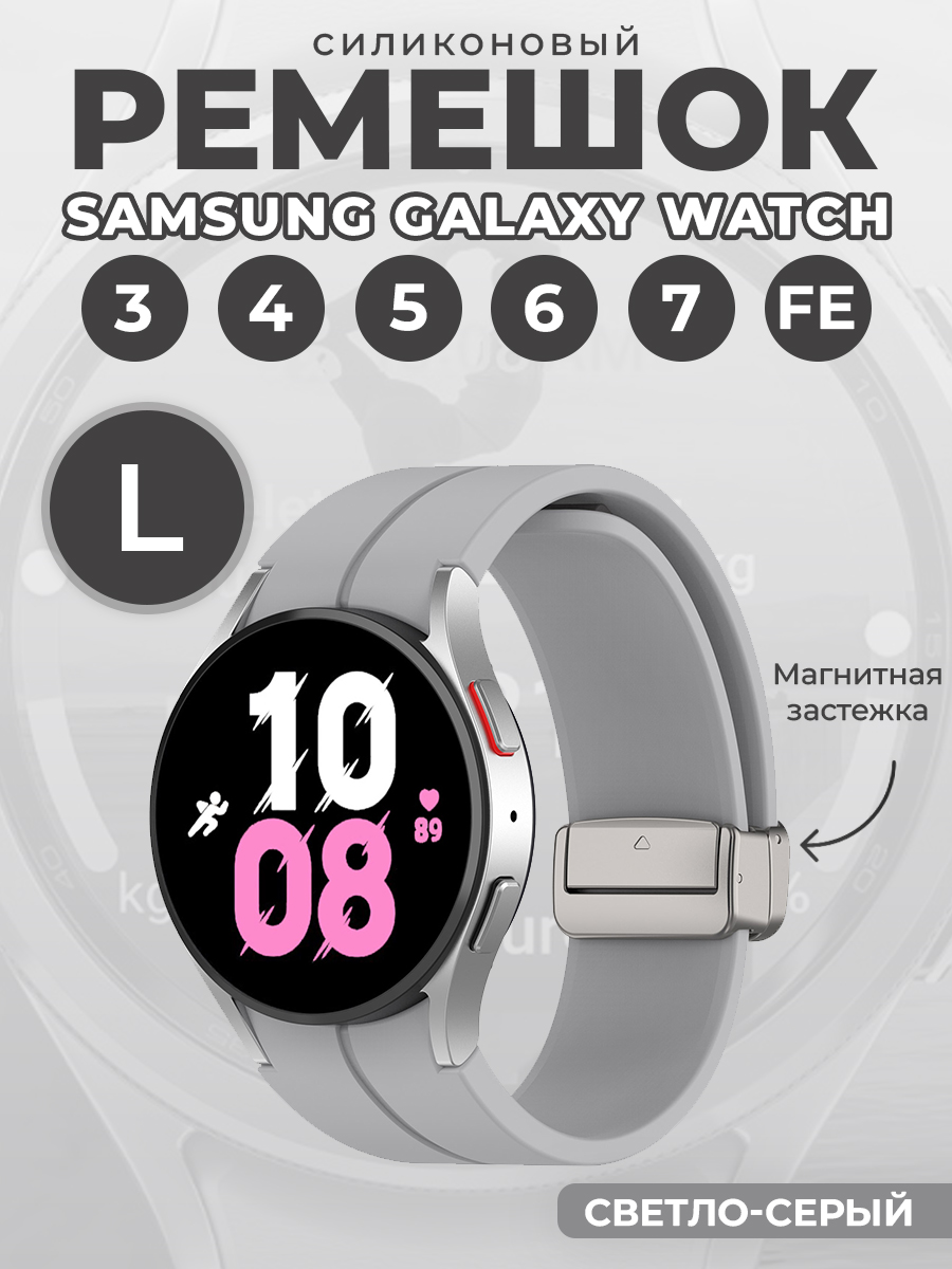 Силиконовый ремешок для Samsung Galaxy Watch 3/4/5/6/7/FE, L, серебристая застежка, светло-серый