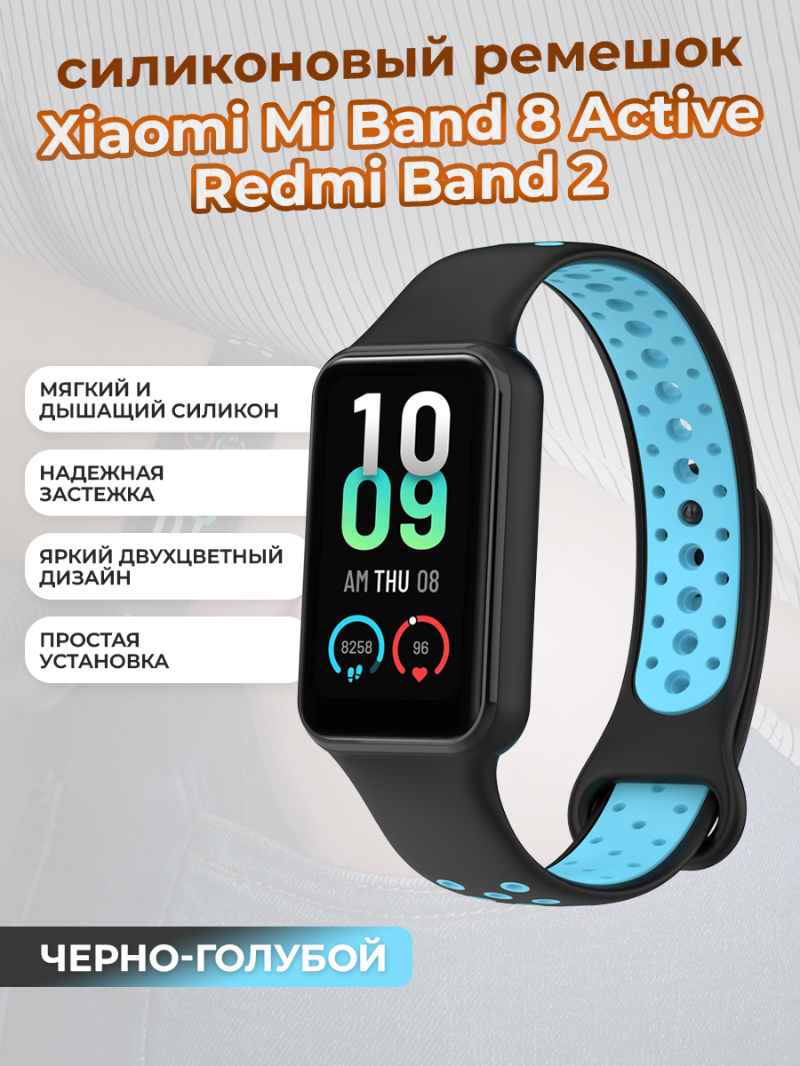 Двухцветный ремешок для смарт-часов Xiaomi Mi Band 8 Active / Redmi Band 2, черно-голубой