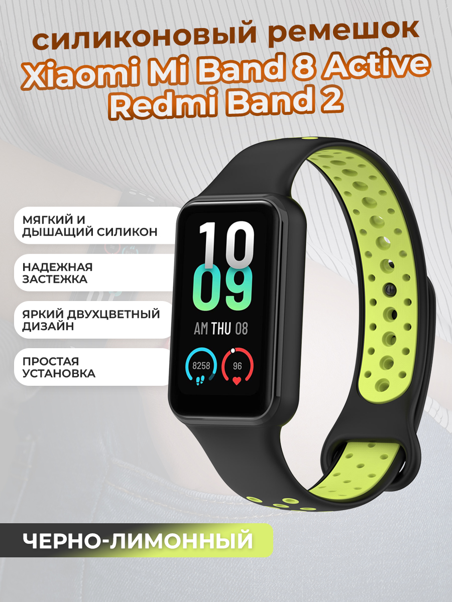 Двухцветный ремешок для смарт-часов Xiaomi Mi Band 8 Active / Redmi Band 2, черно-лимонный