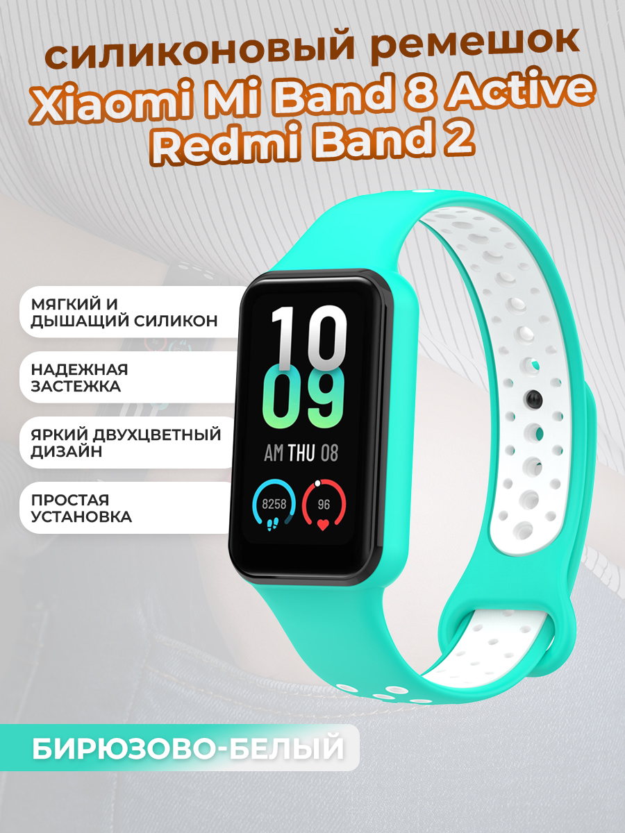 Двухцветный ремешок для смарт-часов Xiaomi Mi Band 8 Active / Redmi Band 2, бирюзово-белый