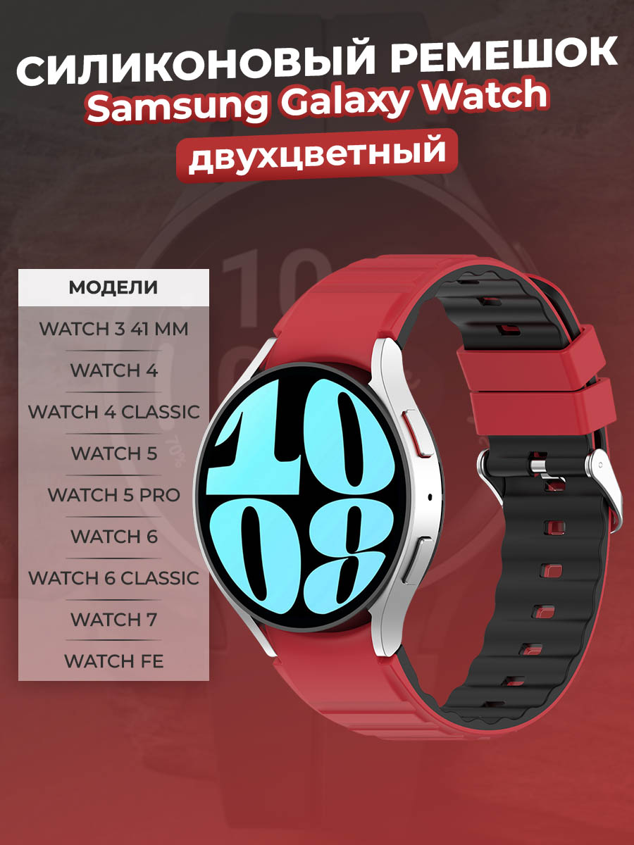 Двухцветный силиконовый ремешок для Samsung Galaxy Watch, красно-черный