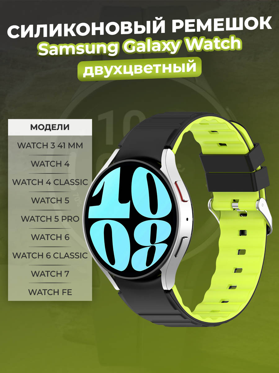 Двухцветный силиконовый ремешок для Samsung Galaxy Watch, черно-лаймовый