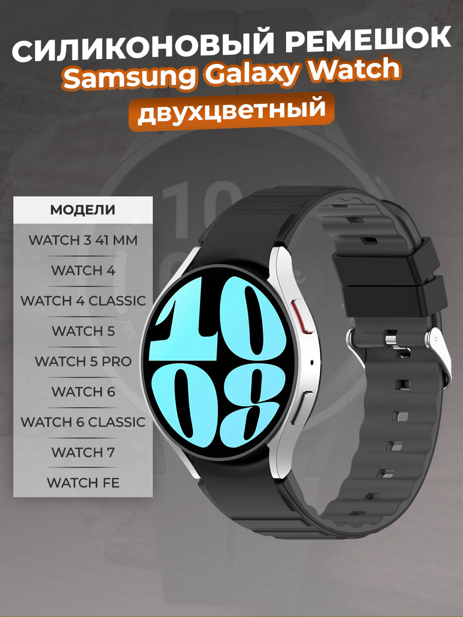 Двухцветный силиконовый ремешок для Samsung Galaxy Watch идеальный универсальный ремешок, объединяет стиль и функциональность. Этот ремешок galaxy watch 6 сочетает в себе лучшие качества, чтобы подчеркнуть индивидуальность вашего Galaxy Watch.