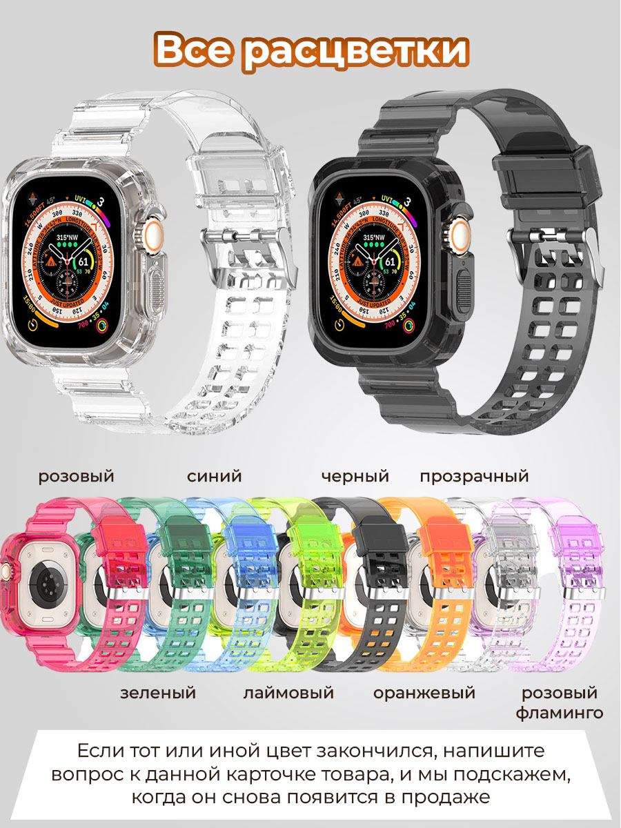 Выбирайте ремешок с чехом, чтобы обеспечить себе максимальную защиту и выразительный стиль. Этот бампер с ремешком для apple watch 40 создаст идеальное сочетание для вашего Apple Watch. Ремешок с бампером для apple watch 40 отлично подходит для ежедневного использования, а яркие и прозрачные цвета делают браслет для часов универсальным аксессуаром, который легко сочетать с любым нарядом.