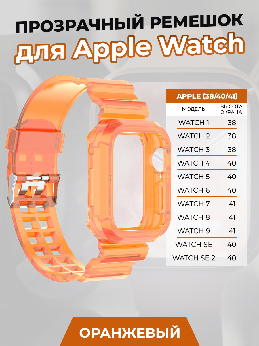 Прозрачный ремешок для Apple Watch 1-9 / SE (38/40/41 мм), оранжевый