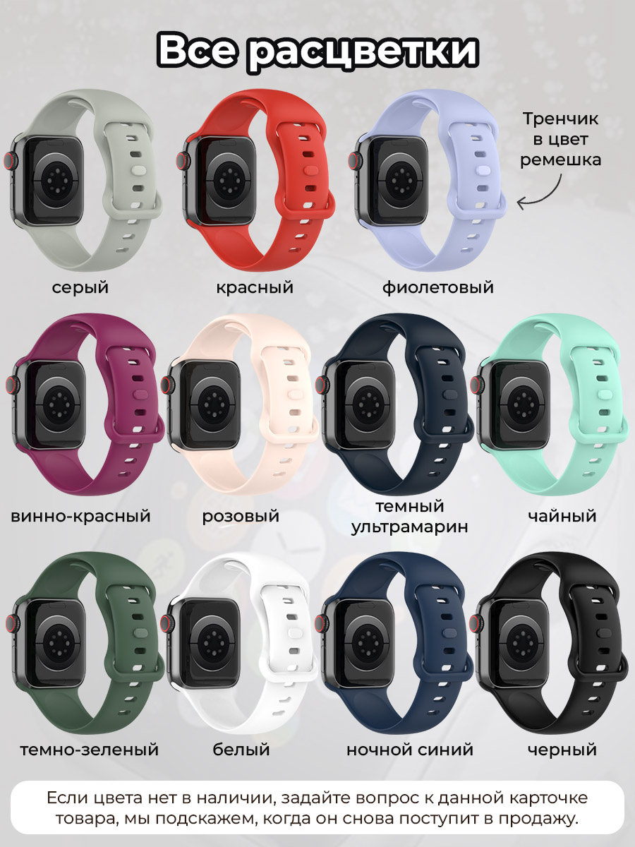 Силиконовый ремешок для Apple Watch выполнен из гипоаллергенного силикона, что делает его подходящим для людей с чувствительной кожей. Узкий ремешок отлично подходит как для ежедневного использования, занятия спортом, фитнесом и sport active или повседневной носки. Двухцветный ремешок на эппл вотч 41 мм и ремень для часов apple watch 38 мм обеспечивают надежную и комфортную посадку на вашем запястье благодаря регулируемой длине, подходя как для мужского, так и для женского или детского запястья.
