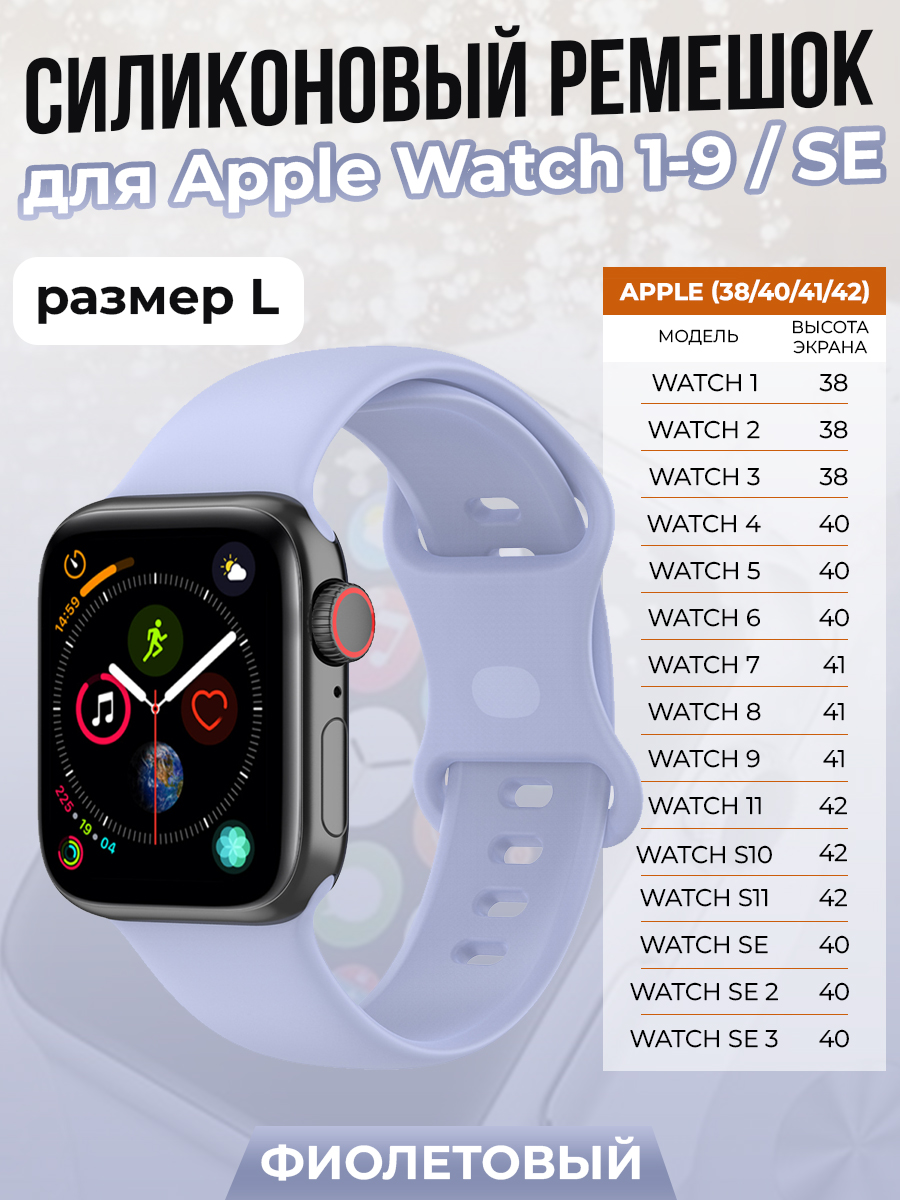 Силиконовый ремешок для Apple Watch 1-9 / SE / SE 3 (38/40/41 мм), 11, S10/S11 42 мм, фиолетовый, размер L