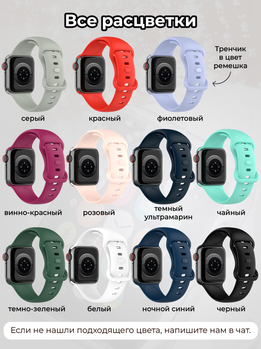 Силиконовый ремешок для Apple Watch размер L, специально разработанный для смарт-часов Apple Watch series 1/2/3/4/5/6/7/8/9/SE, 11, S10/S11 с размерами циферблата: 38 мм, 40 мм, 41 мм и 42 мм. Этот ремешок для часов iphone станет идеальным аксессуаром, который дополнит ваш стиль и обеспечит максимальный комфорт в повседневной носке.