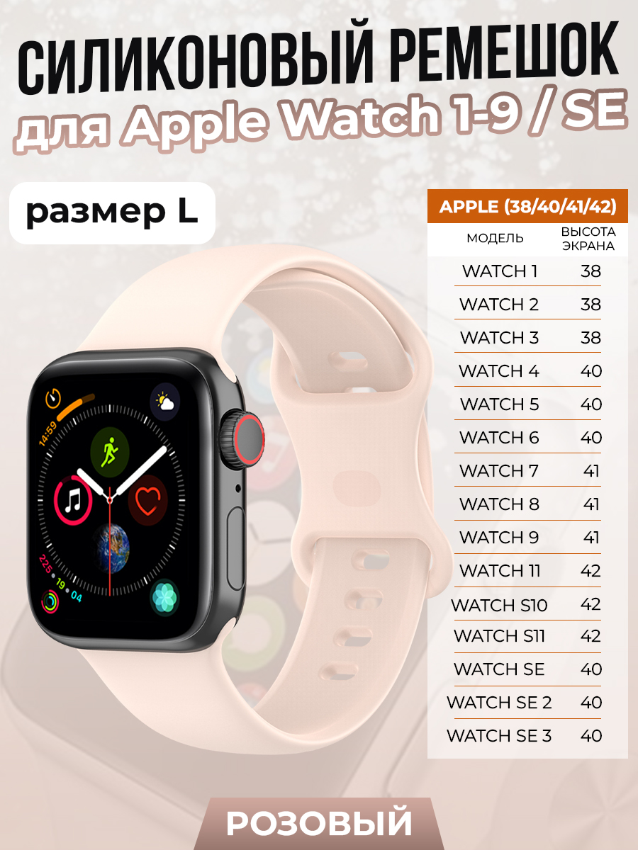 Силиконовый ремешок для Apple Watch 1-9 / SE / SE 3 (38/40/41 мм), 11, S10/S11 42 мм, розовый, размер L