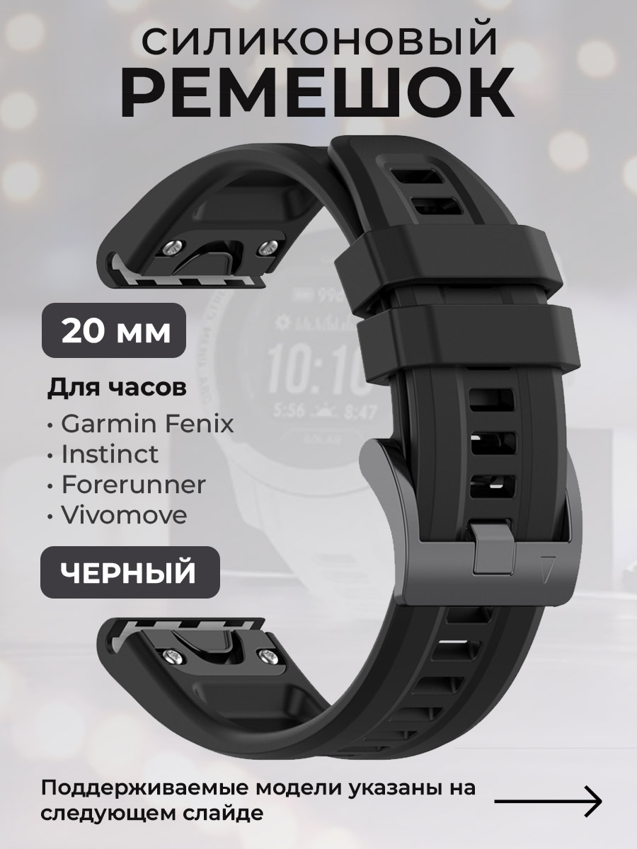 Обладая шириной 20 мм, этот ремешок на часы Garmin подходит не только для моделей Garmin Fenix, но и для Garmin Instinct , Garmin Forerunner и Garmin Vivomove.