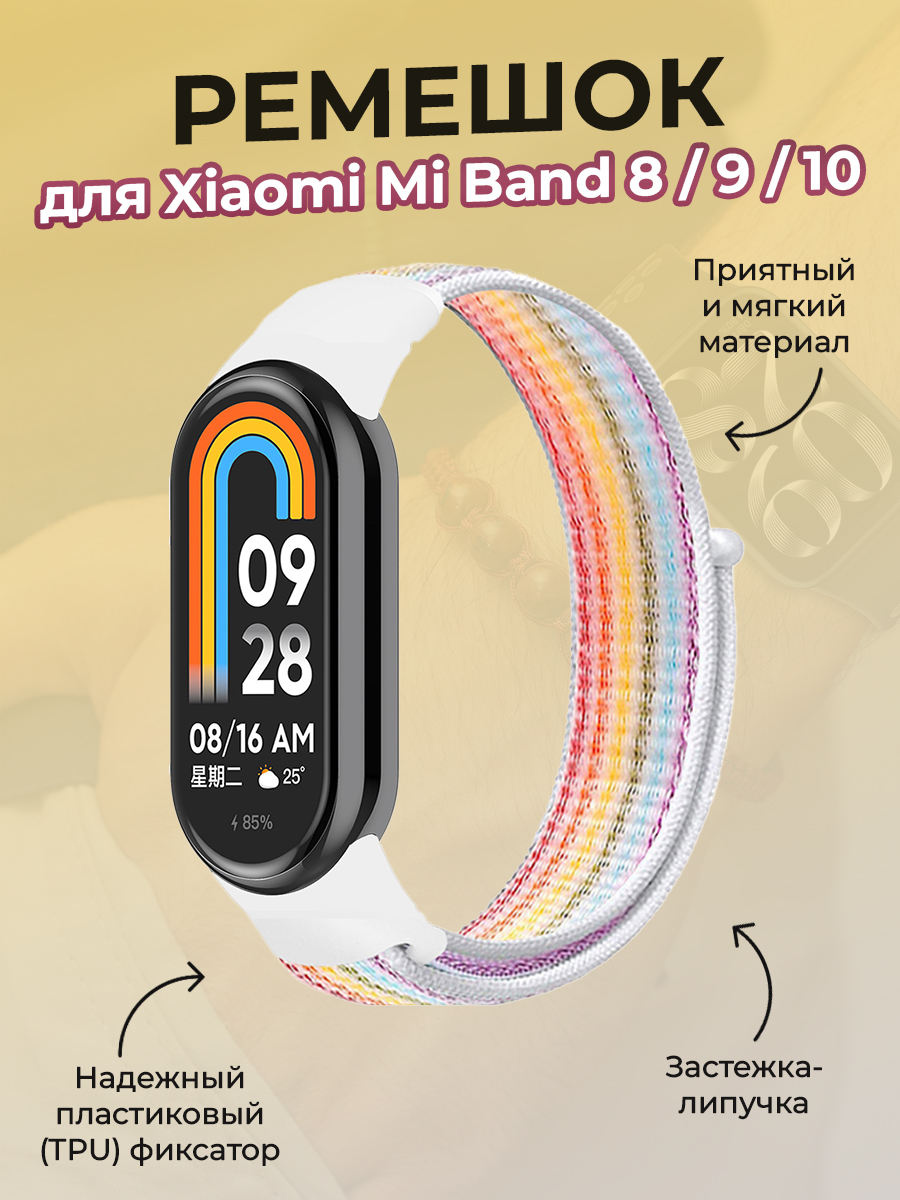 Ремешок с нейлоновой петлей на липучке для Xiaomi Mi Band 8/9/10, разноцветный