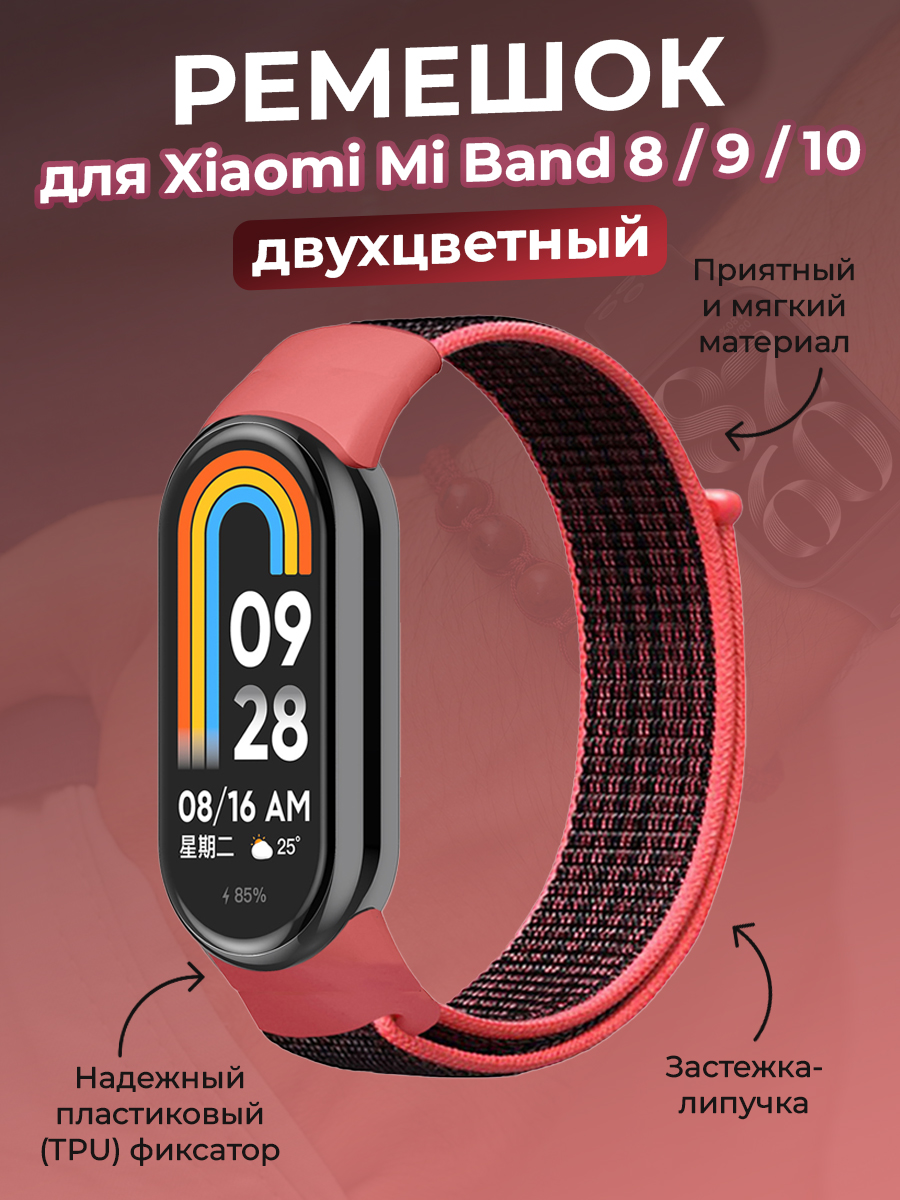 Ремешок с нейлоновой петлей на липучке для Xiaomi Mi Band 8/9/10, красно-черный