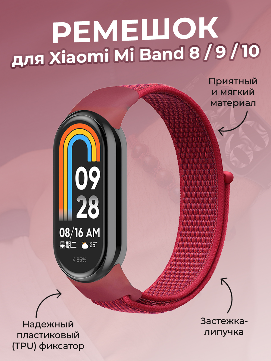 Ремешок с нейлоновой петлей на липучке для Xiaomi Mi Band 8/9/10, китайский красный