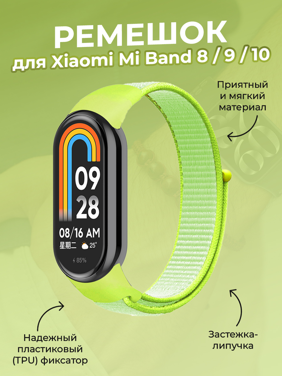 Ремешок с нейлоновой петлей на липучке для Xiaomi Mi Band 8/9/10, лаймовый