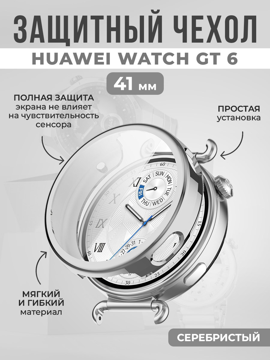 Мягкий защитный чехол для Huawei Watch GT 6, 41 мм, серебристый