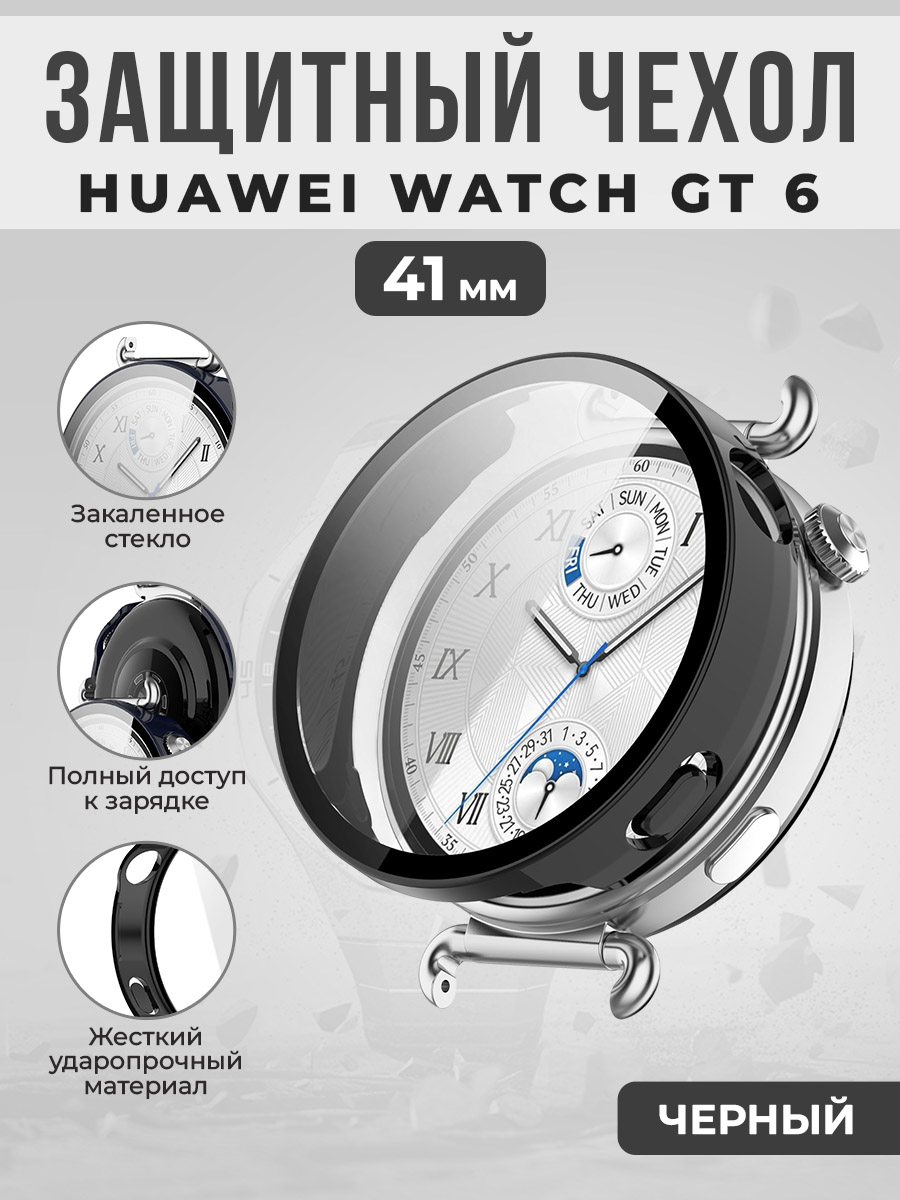 Жесткий защитный чехол со стеклом для Huawei Watch GT 6, 41 мм, черный