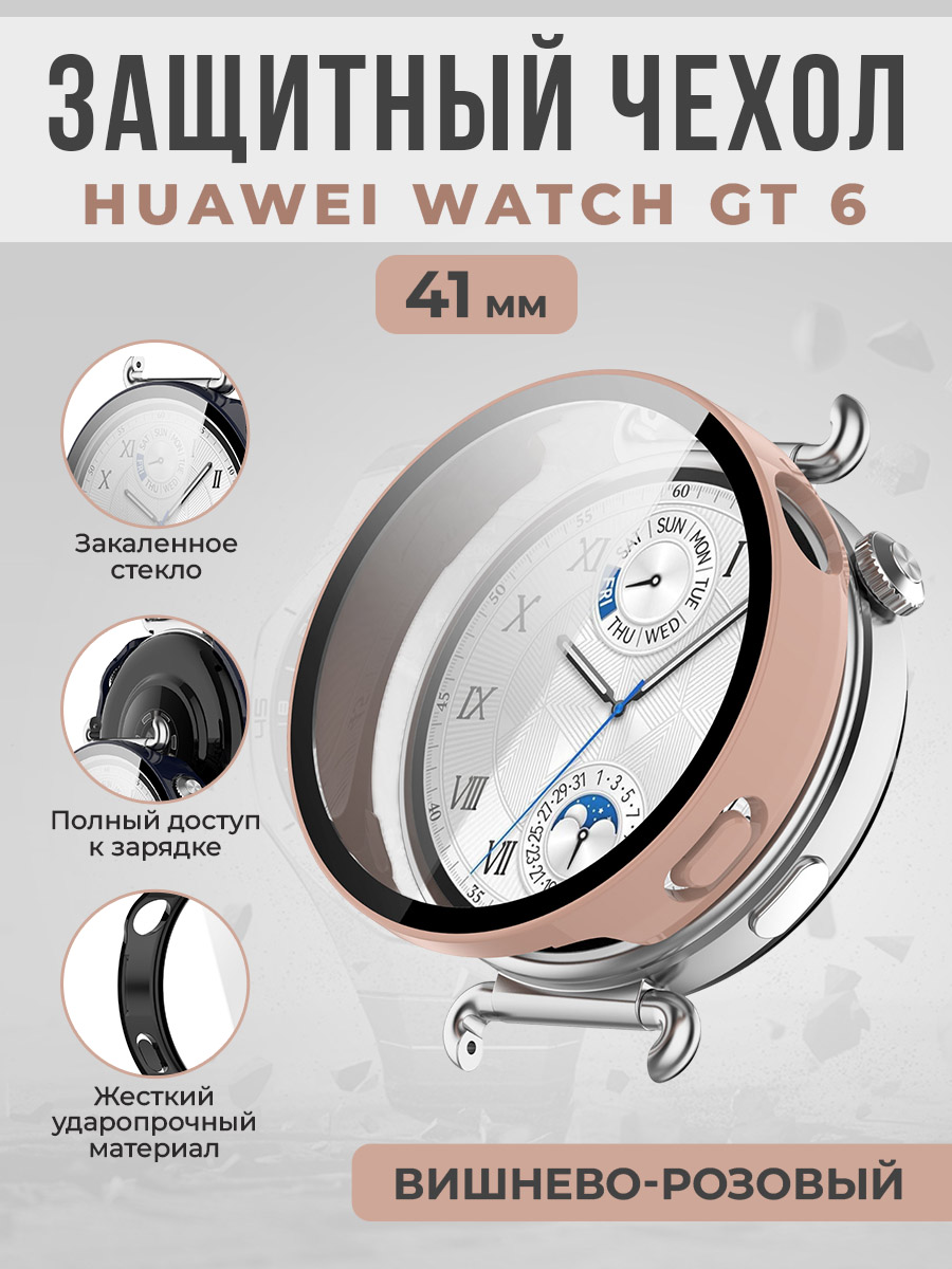Жесткий защитный чехол со стеклом для Huawei Watch GT 6, 41 мм, вишнево-розовый