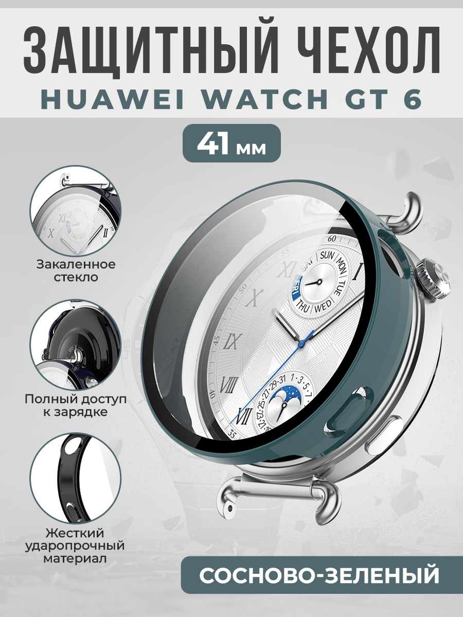 Жесткий защитный чехол со стеклом для Huawei Watch GT 6, 41 мм, сосново-зеленый