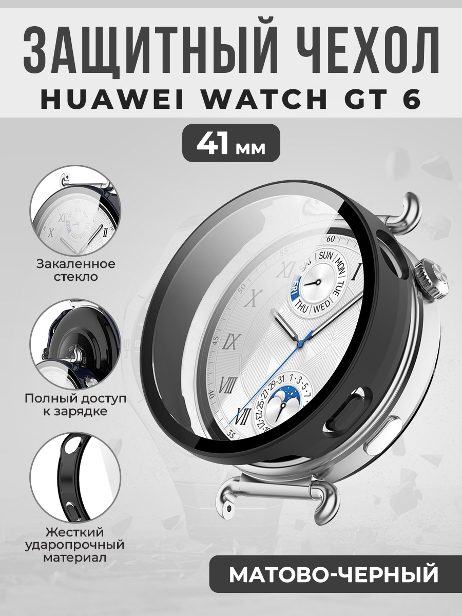 Жесткий защитный чехол со стеклом для Huawei Watch GT 6, 41 мм, матово-черный