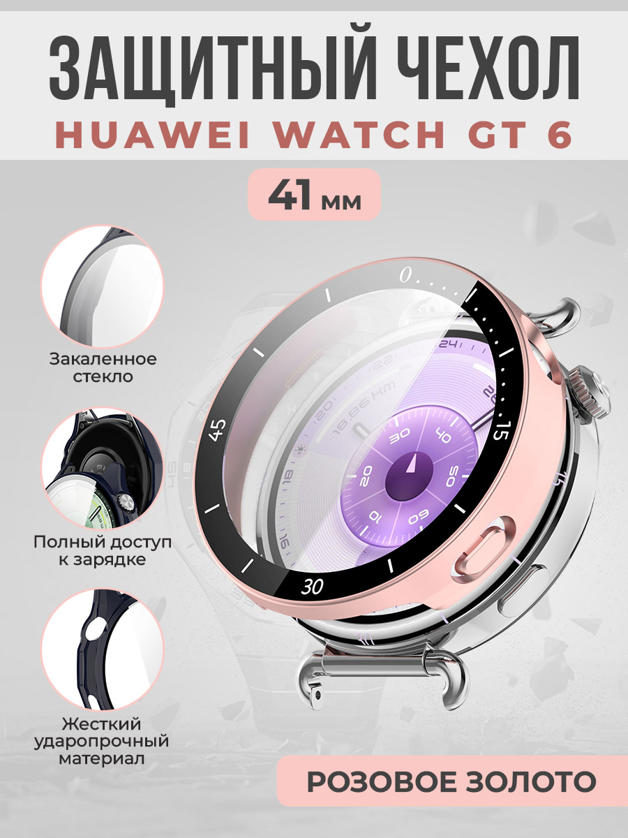 Жесткий защитный чехол со стеклом для Huawei Watch GT 6, 41 мм, розовое золото