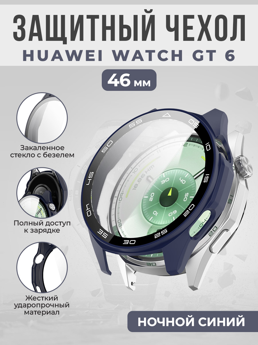 Жесткий защитный чехол со стеклом для Huawei Watch GT 6, 46 мм, ночной синий