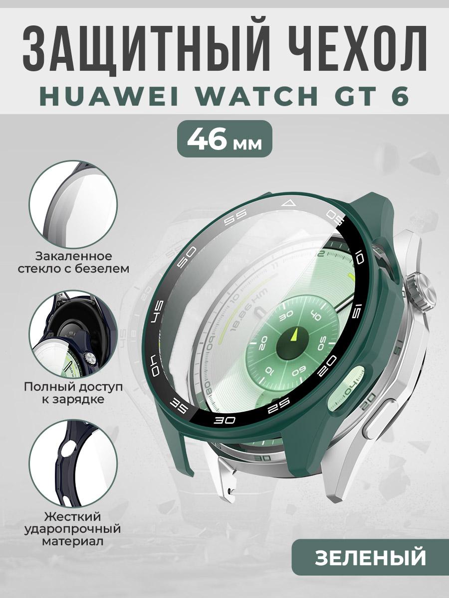 Жесткий защитный чехол со стеклом для Huawei Watch GT 6, 46 мм, зеленый