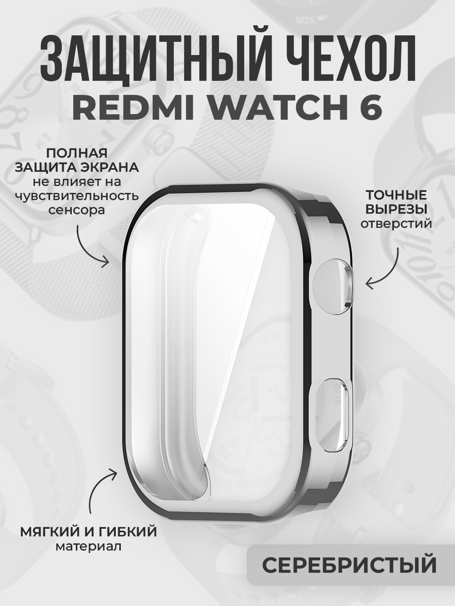 Мягкий защитный чехол ТПУ для Redmi Watch 6, серебристый