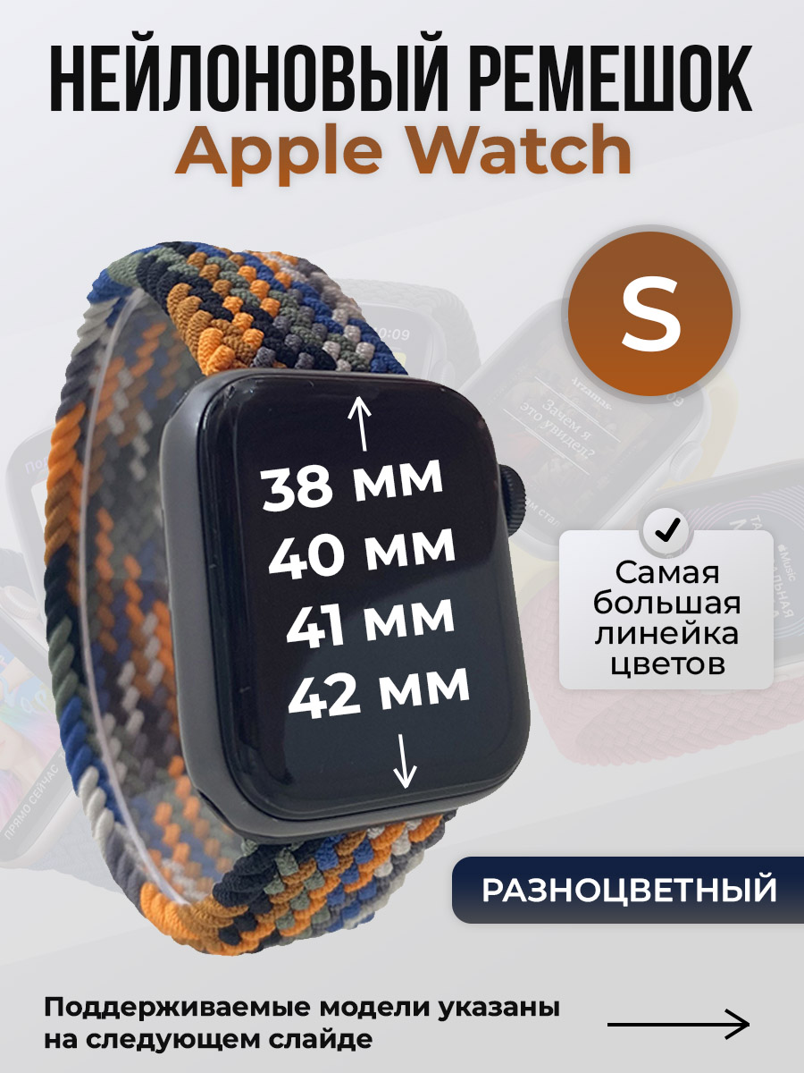 Нейлоновый ремешок для Apple Watch 1-9/SE/SE2/SE3 (38/40/41 мм), 10/11/S10/S11, 42 мм, без застежки, разноцветный, размер S | ГиперМол-качество