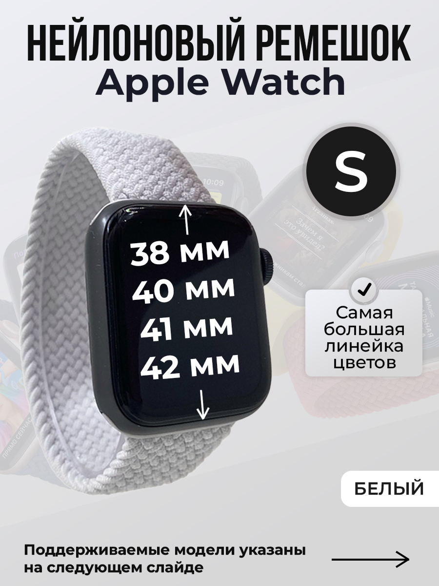Нейлоновый ремешок для Apple Watch 1-9/SE/SE2/SE3 (38/40/41 мм), 10/11/S10/S11, 42 мм, без застежки, белый, размер S