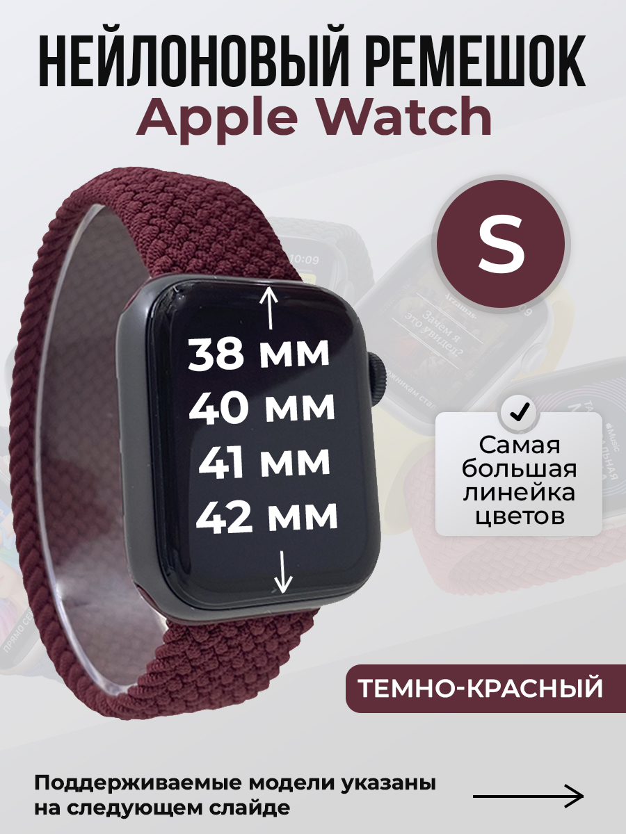 Нейлоновый ремешок для Apple Watch 1-9/SE/SE2/SE3 (38/40/41 мм), 10/11/S10/S11, 42 мм, без застежки, темно-красный, размер S
