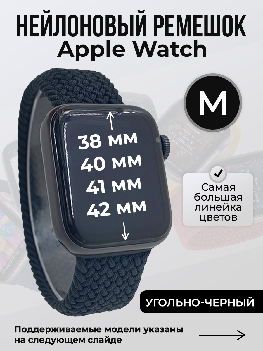 Нейлоновый ремешок для Apple Watch 1-9/SE/SE2/SE3 (38/40/41 мм), 10/11/S10/S11, 42 мм, без застежки, угольно-черный, размер M