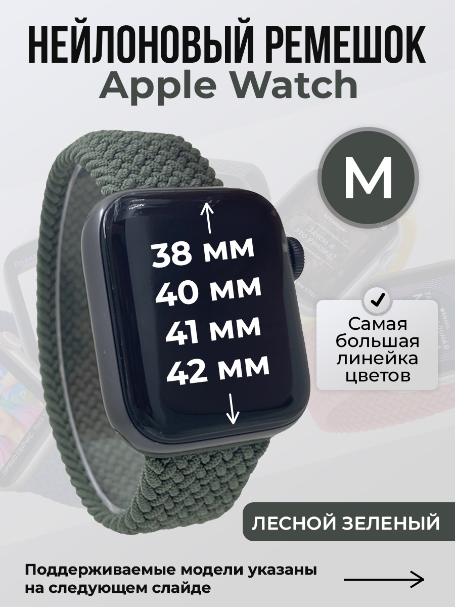 Нейлоновый ремешок для Apple Watch 1-9/SE/SE2/SE3 (38/40/41 мм), 10/11/S10/S11, 42 мм, без застежки, лесной зеленый, размер M