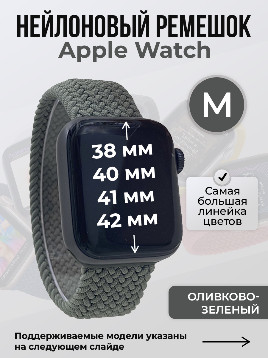 Нейлоновый ремешок для Apple Watch 1-9/SE/SE2/SE3 (38/40/41 мм), 10/11/S10/S11, 42 мм, без застежки, оливково-зеленый, размер M
