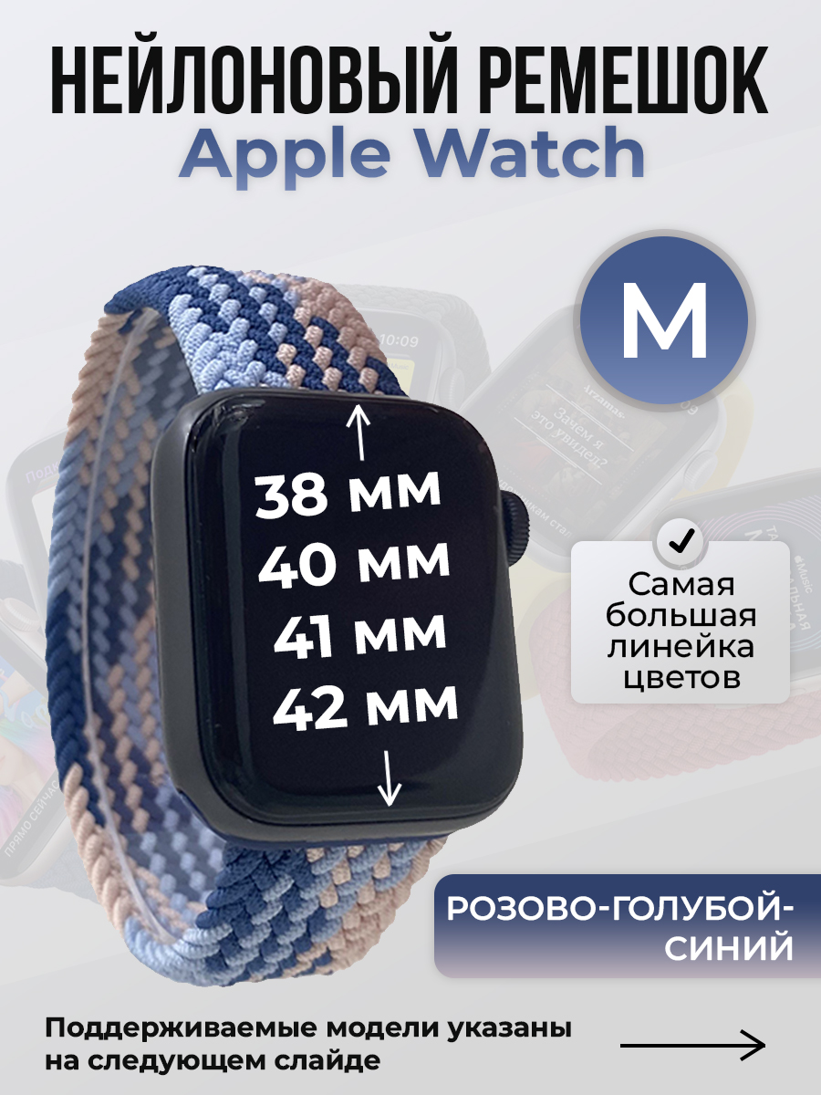 Нейлоновый ремешок для Apple Watch, без застежки, размер M подходит для смарт-часов Apple Watch series 1/2/3/4/5/6/7/8/9/SE/SE2/SE3 с размерами циферблата: 38/40/41 мм, а также для Apple Watch series 10/11, S10/S11 с размером циферблата 42 мм. Ремешок для часов iPhone выполнен из гипоаллергенного нейлона.