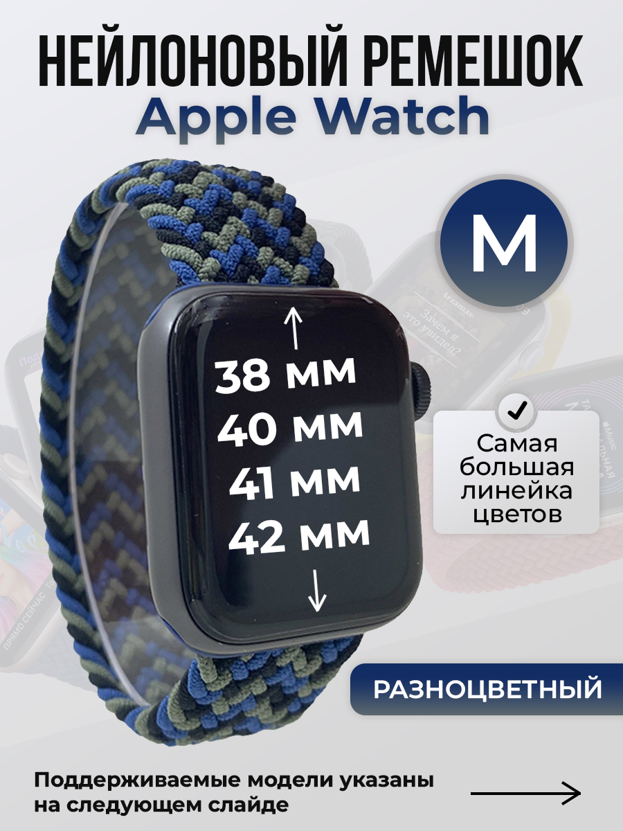 Нейлоновый ремешок для Apple Watch 1-9/SE/SE2/SE3 (38/40/41 мм), 10/11/S10/S11, 42 мм, без застежки, разноцветный, размер M | 123456789