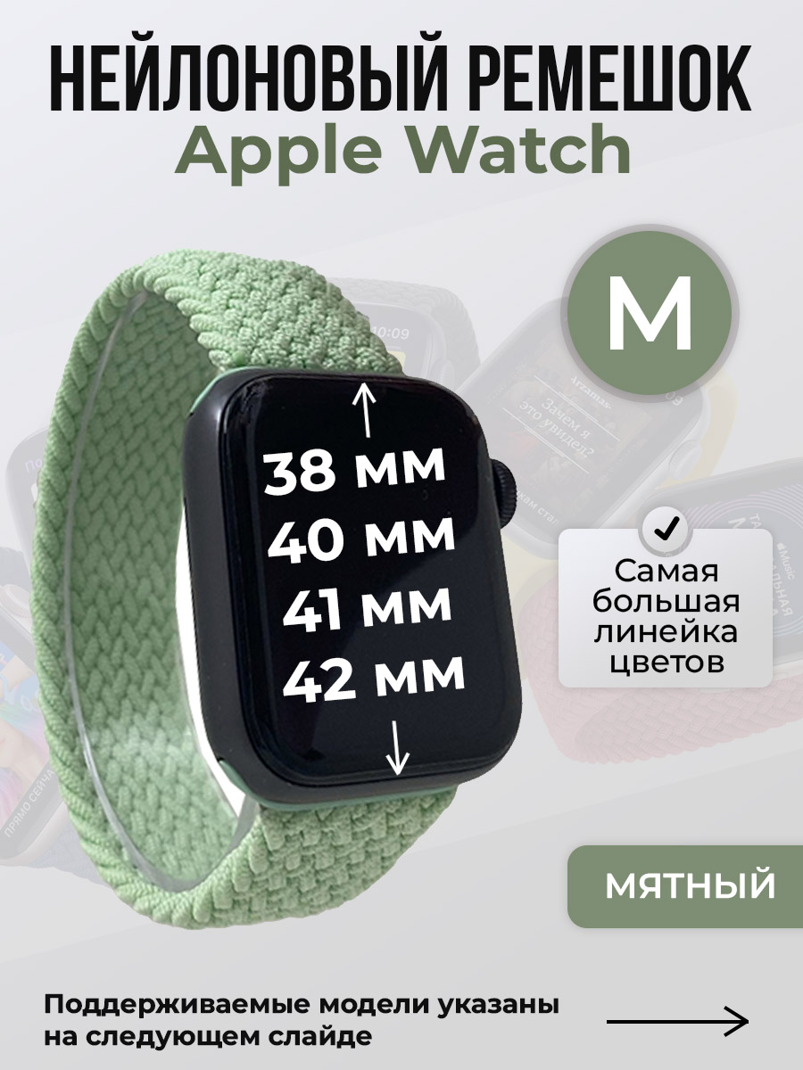 Нейлоновый ремешок для Apple Watch 1-9/SE/SE2/SE3 (38/40/41 мм), 10/11/S10/S11, 42 мм, без застежки, мятный, размер M
