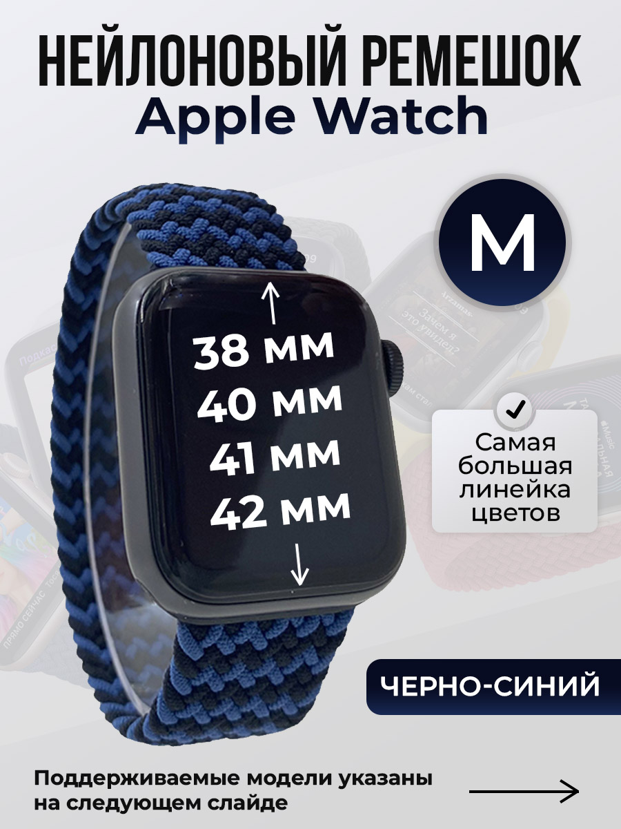 Нейлоновый ремешок для Apple Watch 1-9/SE/SE2/SE3 (38/40/41 мм), 10/11/S10/S11, 42 мм, без застежки, черно-синий, размер M