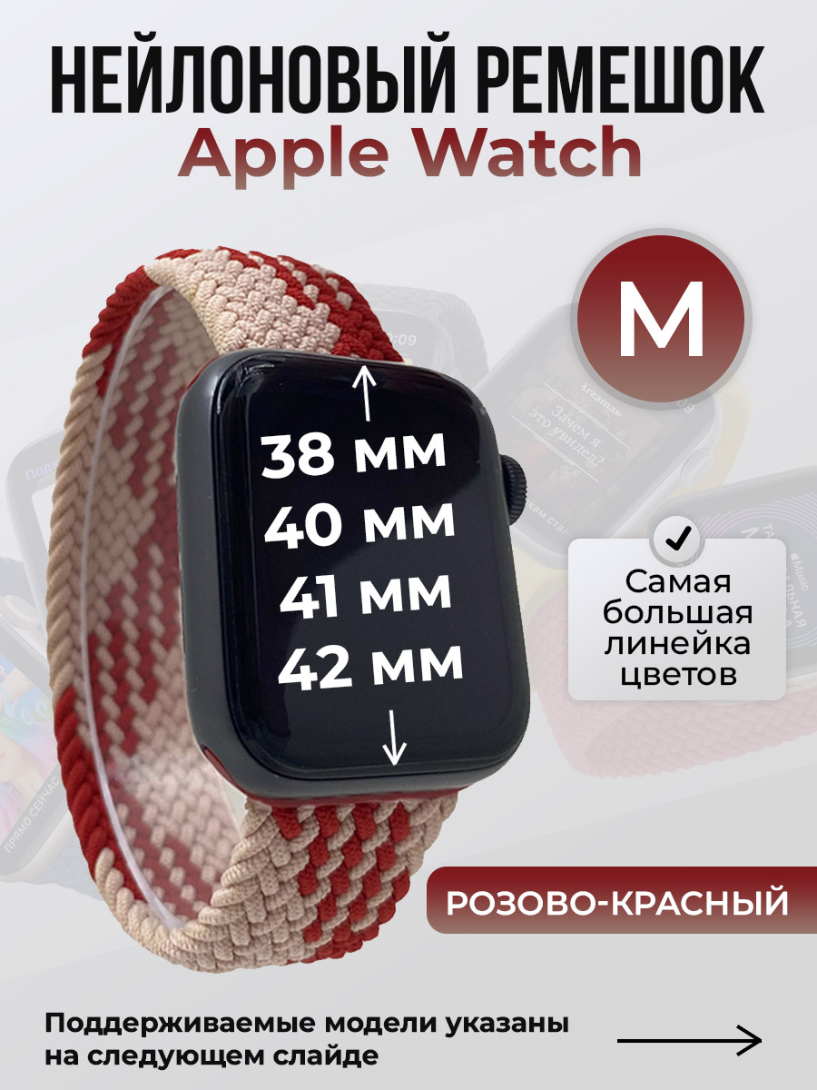 Нейлоновый ремешок для Apple Watch 1-9/SE/SE2/SE3 (38/40/41 мм), 10/11/S10/S11, 42 мм, без застежки, розово-красный, размер M
