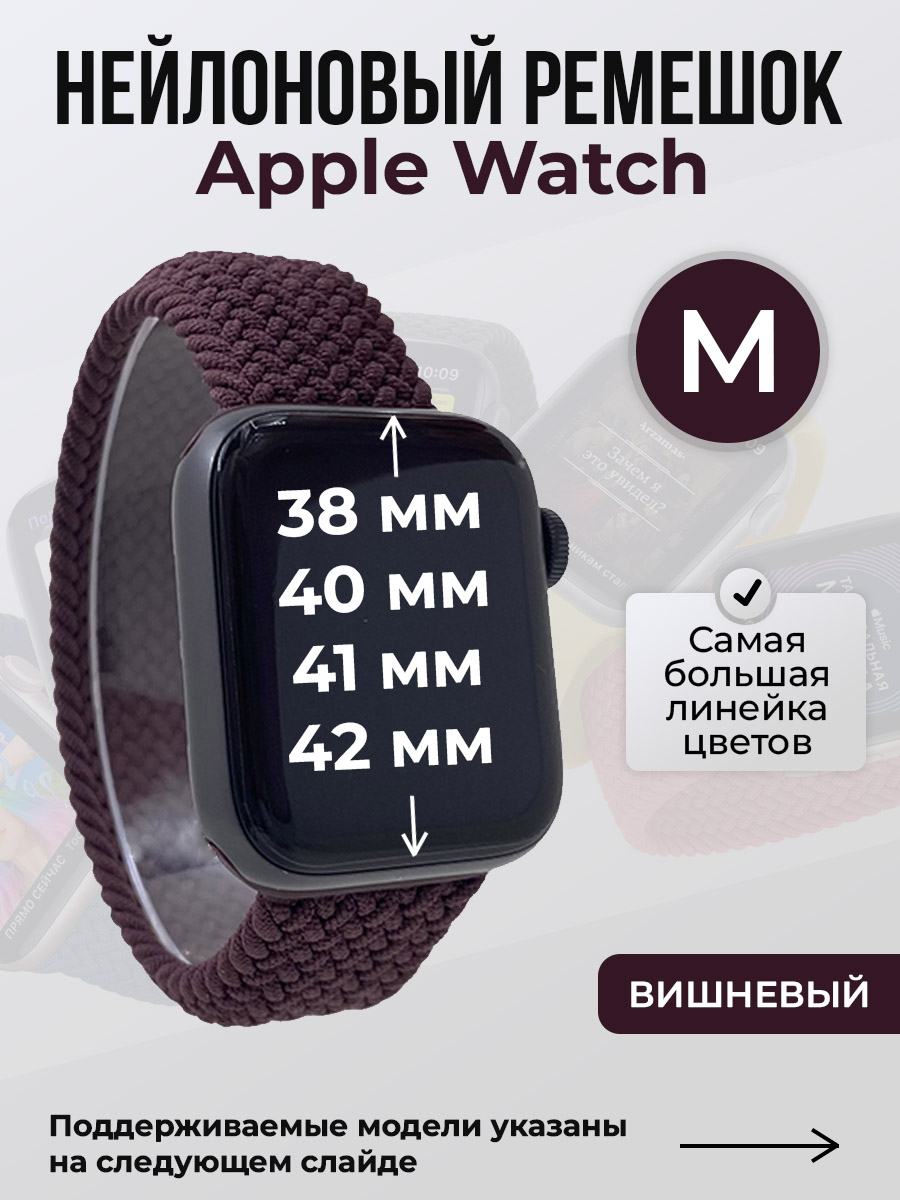 Нейлоновый ремешок для Apple Watch 1-9/SE/SE2/SE3 (38/40/41 мм), 10/11/S10/S11, 42 мм, без застежки, вишневый, размер M
