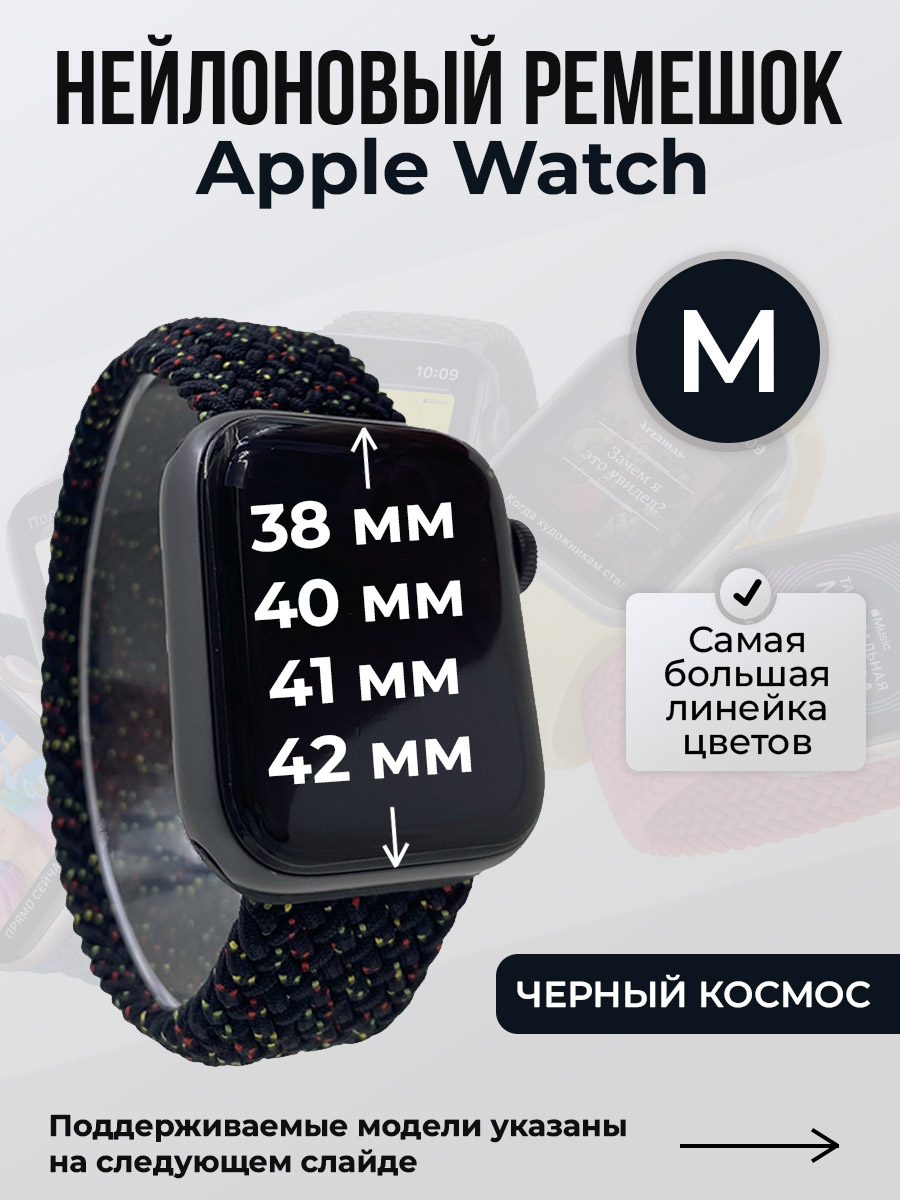 Нейлоновый ремешок для Apple Watch 1-9/SE/SE2/SE3 (38/40/41 мм), 10/11/S10/S11, 42 мм, без застежки, черный космос, размер M | Купить пылесос